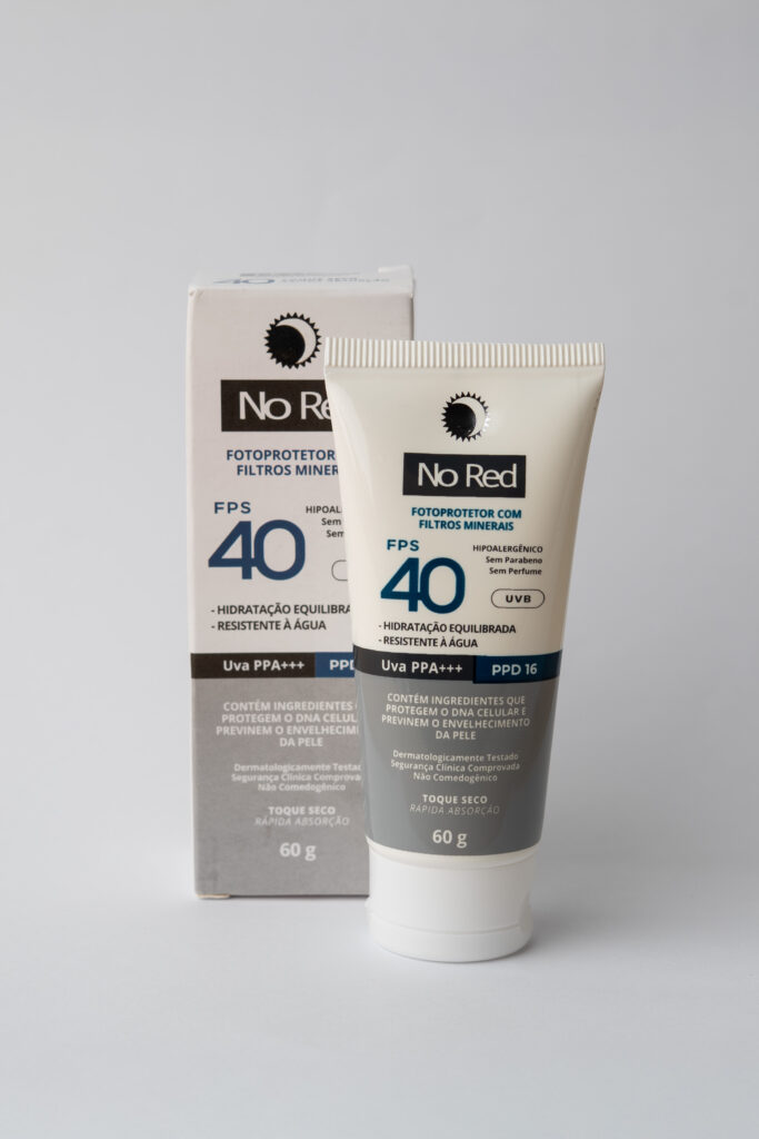 A versão NoRed FPS 40 Mineral amplia a proposta da linha ao oferecer uma alternativa com filtros físicos minerais, como Dióxido de Titânio e Óxido de Zinco.